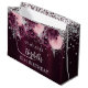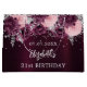 Pour un 21ème anniversaire élégant (ou tout âge). Une couleur arrière - plan dégradé bordeaux. Décoré de faux confettis argent et de fleurs roses et bordeaux. Personnalisez et ajoutez un nom et un âge. Le nom est écrit avec un script de style manuscrit moderne