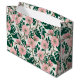 Grand Sac Cadeau Fleurs Roses roses et Motif Feuille vert