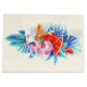 Un grand sac cadeau avec un bouquet de fleurs tropicales vibrant et magnifique. Orchidées, hibiscus et feuilles tropicales. Couleurs rose, turquoise, rouge et bleu.