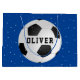 Soccer Football Boules Enfants Nom Blue Christmas Grand Cadeau Sac. Personnalisez avec votre nom. Vous pouvez modifier le texte Joyeux Noël.