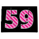 Un des côtés de cette conception amusante et simple de sac cadeau d'anniversaire a un grand numéro "59" avec un motif rose foncé et rose clair rayures. L'autre côté a le message de voeux d'anniversaire "Joyeux 59ème anniversaire", et un nom personnalisable, tous les deux en texte jaune. L'arrière - plan est noir de couleur. Des sacs-cadeaux comme celui-ci peuvent être utilisés pour envelopper des cadeaux ou des cadeaux donnés pour célébrer le cinquante-neuvième anniversaire de quelqu’un. [~Z0000378]