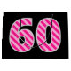 Grand Sac Cadeau Fun rose rayé "60"; Joyeux 60e anniversaire; Nom
