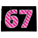Un des côtés de ce design amusant et simple de giftbag à thème anniversaire a un grand nombre "67" avec un motif rose foncé et rose clair rayures. L'autre côté a le message de voeux d'anniversaire "Joyeux 67ème anniversaire", et un nom modifiable, tous deux en texte jaune. L'arrière - plan est noir de couleur. Un sac cadeau comme celui-ci peut être utilisé pour envelopper des cadeaux ou des cadeaux donnés à quelqu'un qui célèbre son soixante-septième anniversaire. [~Z0000378]