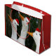 Glamorisez votre cadeau de vacances avec ce grand sac cadeau avec garniture rouge qui présente une photo fantastique de canards blancs amusants portant des casquettes Père Noël rouges. Sélectionnez votre style de sac cadeau. Un design animal amusant pour les vacances !