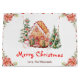 This fun and festive gift bag can be personalized with your name, relation or title. It features a watercolor gingerbread house and beautiful red poinsettia flowers. The text combines handwritten script and sans serif fonts for a stylish and modern look. The snowman, decorated pine trees and holiday wreath add a festive touch. This is perfect for Christmas gifts and party favors.