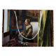 *Il s'agit d'une peinture restaurée de Vermeer "Girl Reading a Letter at an Open Window". Johannes Vermeer (Octobre 1632 - Décembre 1675), dans l'original néerlandais Jan Vermeer van Delft, était un peintre de l'époque baroque hollandaise qui se spécialisait dans les scènes intérieures intérieures de la vie de classe moyenne. Au cours de sa vie, il a été un peintre de genre provincial modérément réussi, reconnu à Delft et à La Haye. Néanmoins, il a produit relativement peu de tableaux et n'était évidemment pas riche, laissant sa femme et ses enfants endettés à sa mort. Vermeer travaillait lentement et avec grand soin, et utilisait fréquemment des pigments très coûteux. Il est particulièrement réputé pour son traitement magistral et son utilisation de la lumière dans son travail. "Presque tous ses tableaux, écrivait Hans Koningsberger, sont apparemment placés dans deux petites pièces de sa maison de Delft ; ils présentent les mêmes meubles et décorations dans divers arrangements et ils représentent souvent les mêmes personnes, surtout des femmes." Sa modeste célébrité a cédé la place à l'obscurité après sa mort. Il a été à peine mentionné dans le principal livre source d'Arnold Houbraken sur la peinture hollandaise du 17ème siècle (Grand Théâtre des Peintres hollandais et des Artistes femmes) et a donc été omis des enquêtes ultérieures sur l'art hollandais pendant près de deux siècles. Au 19ème siècle, Vermeer fut redécouvert par Gustav Friedrich Waagen et Théophile Thoré-Bürger, qui publièrent un essai qui lui attribuait 66 photos, bien que seulement 34 peintures lui soient aujourd'hui attribuées par tous. Depuis lors, la réputation de Vermeer s'est développée et il est maintenant reconnu comme l'un des plus grands peintres de l'âge d'or hollandais. Citation : Wikipedia