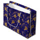 Grand Sac Cadeau Gold and Blue Christmas Poinsettia Flowers