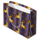 Grand Sac Cadeau Golden Reindeer Glitter Violet Noël