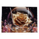 The image represents a golden rose encased within a transparent globe. The rose itself is positioned in the center of the globe, its golden petals slightly open in a blooming manner. The background is dark, allowing the rose, the globe, and the bubbles to stand out, creating an atmosphere of enchantment and wonder.