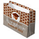Concevez vos propres sacs cadeaux de graduation personnalisés avec ce casquette en cuivre faux cool et design de goût, une palette de couleurs neutres et du texte personnalisé. La moitié supérieure de ce grand sac cadeau comporte un motif de minuscules planches de mortier avec des tasselles sur un arrière - plan d'amandes chaudes grillées. Un casquette en cuivre plus gros et faux âge sur un demi-cercle de blanc criblé de pops brun foncé sur le motif. Customisez le texte sur la moitié inférieure couleur taupe de ce sac cadeau diplômé en ajoutant le nom de votre grade en blanc, CLASS OF et l'année en cuivre brun foncé et même Félicitations peut être édité à Notre diplômé ou Vous l'avez fait! si vous le souhaitez. Créez un sac cadeau de remise de diplômes d'une nature qui sera imprimé juste pour vous dans ce jeu de couleurs de la terre de bronze, taupe, brun et blanc pour apporter un peu de WOW supplémentaire à votre cadeau de remise de diplômes du lycée ou de l'université.