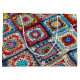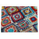 Les carrés de mamie au crochet multicolores sont disposés dans une grille avec chacun un motif unique de formes concentriques