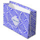 Grand sac cadeau a le drapeau grec et le mot, ou nom GRÈCE ci-dessous en bleu, carrelé en diagonale pour un look artistique. Le drapeau présente des rayures bleues et blanches avec une croix bleue et blanche en haut à droite. Un espace blanc et texturé de carrés grossiers tient une place pour votre nom pour personnaliser un objet ou créer un cadeau customisé. Amusez-vous pour des réunions de famille, des groupes de voyage et partagez votre amour et votre fierté pour votre patrimoine, votre ascendance et votre culture. Idéal pour célébrer la Journée d'Oxi.