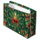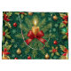 Grand Sac Cadeau Green Pattern Gold Candle Poinsettia Flower