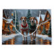 This festive design captures the joyful spirit of the holiday season, featuring an adorable dogs.Nestled in a winter wonderland, complete with a decorated Christmas tree, and beautifully wrapped presents. Snowflakes gently fall, adding a magical touch to the scene, while the vibrant colors of the holiday decorations create a warm and cheerful atmosphere.