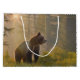 Ce grand sac cadeau comporte un magnifique grizzli dans une forêt atmosphérique. Possibilité d'ajouter le texte de votre choix.