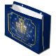 Grand Sac Cadeau Hanoukka décorative bleue et dorée