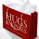 Personalized gift bags add a thoughtful, luxurious touch to any gift. This stylish design features "Hugs & Kisses" in classic typography, and can be customized with the recipient's name and a "Happy Birthday Day" message — perfect for milestone birthdays including 18th, 21st, 30th, 40th, 50th and 60th. This elegant template can be adapted for Valentine's Day, a bridal shower, bachelorette party, holiday, and other special occasions. A unique addition to your gift wrap, and a lovely choice for a girlfriend, boyfriend, husband, wife, daughter, or best friend. Available in either a matte or glossy finish. Printed colors: deep burgundy red and white, or customize the colors with the design tool.