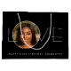 Grand Sac Cadeau Happy Birthday Photo Love Typography Elegant Black