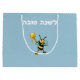 Une jolie abeille tient un bâton de miel qui coule de miel. Le texte dit Shana Tova en anglais et en hébreu, L'Shana Tova. Vous pouvez facilement customiser cette carte en changeant la couleur de l'arrière - plan et/ou en modifiant le texte anglais ou en supprimant l'hébreu.