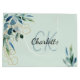 Un fond vert clair. Décoré avec de l'eucalyptus aquarellé et de la verdure d'olive, et du feuillage doré. Personnalisez et ajoutez un nom. Le nom est écrit avec un style de lettrage manuscrit moderne. Parfait pour l'emballage cadeau ou pour les faveurs de fête pour les anniversaires, les douches de mariée et les douches de bébé.