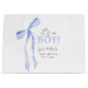 Célébrez l'arrivée prochaine de votre bébé garçon avec notre charmante invitation à la baby shower avec un nœud bleu ! Ce design élégant présente des tons bleus doux, un accent de nœud délicat, parfait pour accueillir votre petit prince. Personnalisez-le avec tous les détails de l'événement pour créer un souvenir mémorable pour votre journée spéciale