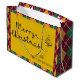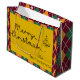 Jacquard Jaune Orange Vert Script Joyeux Noël Grand Sac Cadeau. Cet élégant sac cadeau a un arrière - plan de Jacquard jaune orang vert avec le Joyeux Noël écrit en joli police de style typographie avec le nom de famille. Customisez-le en changeant le nom. Découvrez d'autres produits de coordination comme des étiquettes cadeaux, des rubans, des autocollants dans le magasin.