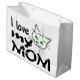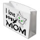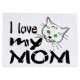 I Love My Mom texte et un dessin d'un chat drôle avec les yeux verts. Format rond et carreaux produits motifs, imprimés et cadeaux pour célébrer la fête des mères. Sacs cadeau amusant pour n'importe qui