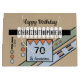 Sacoche cadeau d'anniversaire d'anniversaire spéciale jalon. Exemple montré est pour l'âge de 70 ans - personnalisez pour convenir à un autre âge et ajouter son nom. Brown, blanc, noir, vert, bleu et corail. Triangle, points et rayures. Je vous souhaite un anniversaire très spécial et & une année merveilleuse à venir.
