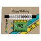 Sacoche cadeau d'anniversaire d'anniversaire spéciale jalon. Exemple montré est pour l'âge de 80 ans - personnalisez pour convenir à un autre âge et ajouter son nom. Brown, blanc, noir, jaune, vert et turquoise. Triangle, points et rayures. Je vous souhaite un anniversaire très spécial et & une année merveilleuse à venir.