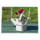 Une aquarelle d'un petit arrosoir utilisé comme pot de fleurs.
