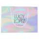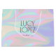 Elégant design de sac cadeau avec une texture imitation holographique colorée et une police calligraphique élégante.