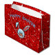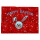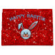 Un mignon sac cadeau de Pâques rouge avec un motif de parties scintillant rouge dans l'arrière - plan (imprimé seulement) et un lapin bleu extrêmement mignon à l'avant et à l'arrière. Au-dessus de la tête du lapin se trouve le salut traditionnel de Pâques de 'Joyeux Pâques'. Cela ferait un grand sac cadeau pour présenter vos oeufs de Pâques dans cette année pour les enfants car ils adoreront le mignon visage lapin.