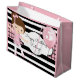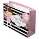 Un sac cadeau super mignon avec des rayures noir & blanc audacieuses et modernes, un motif cool rose & noir en vichy, une jolie ballerine et personnalisation des deux côtés.