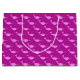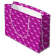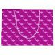 Ce sac cadeau impressionnant présente une image art numérique d'une jolie petite fille rose magique Narwhal. Le corps principal du Narwhal a une texture rugueuse et est rose vif tandis que le ventre est rose pâle. Le Narwhal a un oeil noir avec une pupille rose pâle et une corne dorée brillante sur le visage. Il a aussi une queue délicate et des palmes.