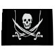 Grand sac cadeau noir brillant avec une image, sur le devant, d'un Jolly roger blanc. Voir sac cadeau moyen, invitation, enveloppe, confetti, sac de faveur, ballotin, étiquette de faveur, étiquette, aimant de sauvegarde, autocollant carré et papier d'emballage. Voir toute la collection de sacs-cadeaux Shipwreck dans les TOUCHES SPÉCIALES| Section Favoris.