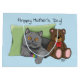 Chat gris mignon avec jouet et ours en peluche souhaitant à leur chat maman une joyeuse fête des mères. Bonne fête des mères du chat
