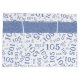 Personnalisez facilement l'étiquette cadeau et, "Joyeux anniversaire", avec les modèles texte fournis. Cette conception est un motif de nombres aléatoires bleu et blanc avec le numéro de jalon 105 répété dans des tailles et angles variés pour une impression tout-en-haut. Il y a une bannière de ruban imprimée et une étiquette cadeau avec des modèles de texte pour changer à vos propres mots, nom, initiale ou monogramme. Une excellente idée pour l'emballage cadeau personnalisé pour toute 105e occasion spéciale. Il est adapté pour les anniversaires, anniversaires ou pour toutes les occasions où vous célébrez le numéro 105; juste en changeant le texte pour correspondre à l'événement. REMARQUE : Le ruban et l'étiquette-cadeau ne sont pas réels; ils font partie du design imprimé.