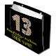 Ce sac cadeau amusant et simple thème de Noël et thème d'anniversaire Décembre 25ème anniversaire conception de sac cadeau d'anniversaire dispose d'un grand nombre "13", avec un motif de rayures vert/blanc/rouge. Il comporte également le message "Joyeux 13e anniversaire & Joyeux Noël", et un nom personnalisable. L'arrière - plan est noir de couleur. Un sac cadeau comme celui-ci pourrait être une façon amusante d'envelopper les cadeaux qui sont donnés à quelqu'un qui est né le 25 décembre (jour de Noël) et qui célèbre son treizième anniversaire. [~Z0000407]