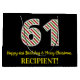 Ce sac cadeau de Noël simple et amusant et sur le thème de l'anniversaire du 25 décembre est doté d'un grand numéro "61" avec un motif rayé rouge, blanc et vert, avec le message "61e anniversaire heureux et joyeux Noël", et un nom personnalisé. L'arrière - plan est noir de couleur. Un sac cadeau comme celui-ci pourrait être une façon amusante d'envelopper les cadeaux qui sont donnés à quelqu'un qui est né le 25 décembre (jour de Noël) et qui célèbre son soixante et unième anniversaire. [~Z0000407]