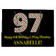 Ce sac cadeau amusant et simple thème de Noël et thème d'anniversaire Décembre 25e anniversaire conception de sac cadeau d'anniversaire dispose d'un grand nombre "97", avec un motif rouge, blanc et vert rayures. Il comporte également le message "Joyeux 97e anniversaire & Joyeux Noël", et un nom personnalisé. L'arrière - plan est noir de couleur. Un sac cadeau comme celui-ci peut être utilisé pour envelopper des cadeaux ou des cadeaux qui sont donnés à quelqu'un dont le 25 décembre tombe le quatre-vingt-dix-septième anniversaire (jour de Noël). [~Z0000407]