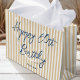 Élevez votre cadeau de cadeau avec un sac cadeau de nom personnalisé! Ce design chic présente une typographie de script élégante et un motif simple rayé avec un faux look de lin. Personnalisez le modèle avec le nom et l'âge du récipiendaire — parfait pour les anniversaires jalons dont les 18e, 21e, 30e, 40e, 50e, 60e, 70e, 80e, 90e et 100e! Ce design élégant allie style intemporel et modernité, et le texte peut être facilement ajusté pour les anniversaires, les fêtes ou une occasion spéciale. Fabriqué avec du papier de qualité supérieure et disponible avec un fini mat ou brillant. Couleurs imprimées : bleu foncé, bleu marine, or beige naturel et blanc.