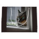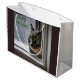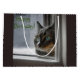 Ce sac cadeau comporte un chaton mignon qui regarde par la fenêtre sur une scène hivernale.