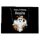 Sac cadeau avec l'illustration d'un fantôme souriant. Décoré de fleurs, arcs-en-ciel et chauves-souris.