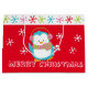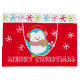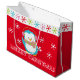 Ce joyeux petit pingouin est présenté sur ce sac de courses. Il est prêt pour la saison des Fêtes avec son foulard rayé, ses oreilles roses et son sucre de canne. L'arrière - plan rouge est parsemé de flocons de neige blancs. La bande blanche entoure le haut du sac avec des flocons de neige colorés. Le texte en bas peut être customisé.