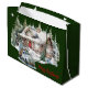 Joyeux Noël du grand sac cadeau de vacances Cabine. De notre hiver à la collection Cabine. Cabine en rondelle avec cerf et ours surplombant. L'étoile de Bethléem brille de mille feux. Un camion vintage est chargé de cadeaux et décorations pour la journée spéciale. La cabine est éclairée pour les clients attendus. Chaleureux et cosy. Un grand sac cadeau est parfait pour les cadeaux de Noël et les cadeaux alimentaires pour les vacances! "Joyeux Noël !"