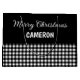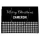 Enveloppez vos cadeaux de vacances dans le style avec ce sac cadeau de Noël en plastique de buffle rustique de Plaid Perfection. Doté d'une base en plaid noir et blanc audacieuse, d'un arrière - plan noir élégant et d'une édition festive de "Joyeux Noël", ce sac comprend également de l'espace à personnaliser avec n'importe quel nom/texte pour une touche extra-spéciale. Parfait pour envelopper les cadeaux de Noël pour la famille, les amis ou les collègues, ce sac réutilisable apporte un charme de vacances confortable à chaque célébration. Modifiez le texte de la page produit ou pour modifier le style ou la couleur de police, utilisez l'outil de conception.