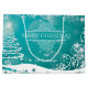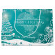 Joli design d'un sapin de Noël orné de décorations. Vins, fleurs blanches et flocons de neige entourent l'accueil de vacances. Le centre est le message traditionnel de Noël Joyeux. Le tout posé sur un bel aqua, cyan et turquoise dégradé ombre arrière - plan. Cette conception permet de personnaliser tout le texte pour en faire un message vraiment personnel.