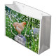 Ce sac cadeau comprend un poulet bouffant orpington posé sur un champignon en bois entouré de marguerites blanches. Idéal pour les fermiers et les amateurs de poulet !