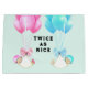 Sac cadeau adorable pour de nouveaux parents avec des ballons roses et bleus et des bébés jumeaux drôles.