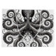 Une image détaillée du mystérieux kraken avec détails ornés en noir avec motifs tourbillonnants. Ce design a été créé pour embrasser le mystère et la mythologie du kraken.